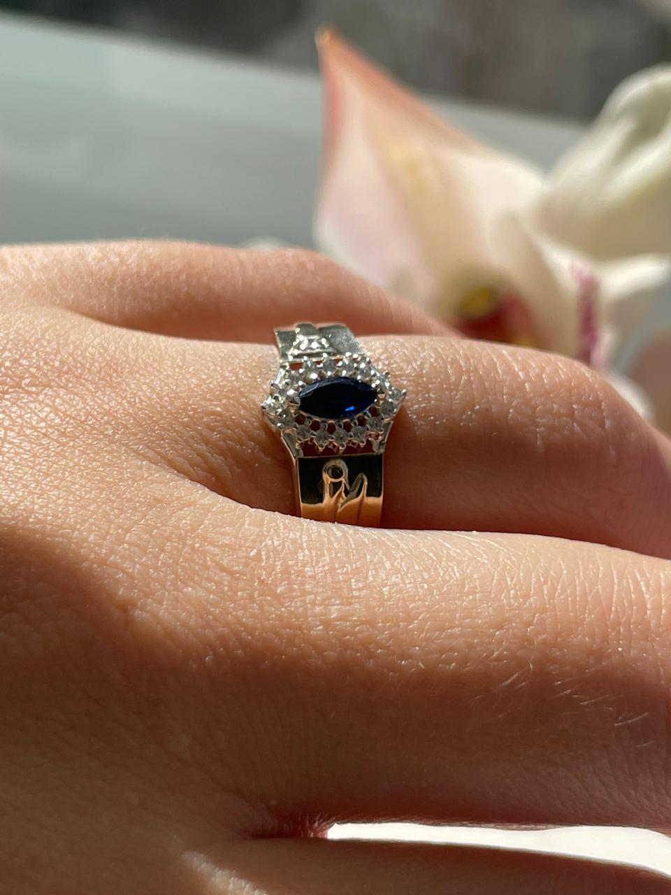 ANEL EM PRATA 925 COM DETALHES EM OURO, COM PEDRA CENTRAL E O SÍMBOLO DA ARQUITETURA NAS LATERAIS. POSSUI DESIGN ELEGANTE, MODERNO E ACABAMENTO BRILHANTE.