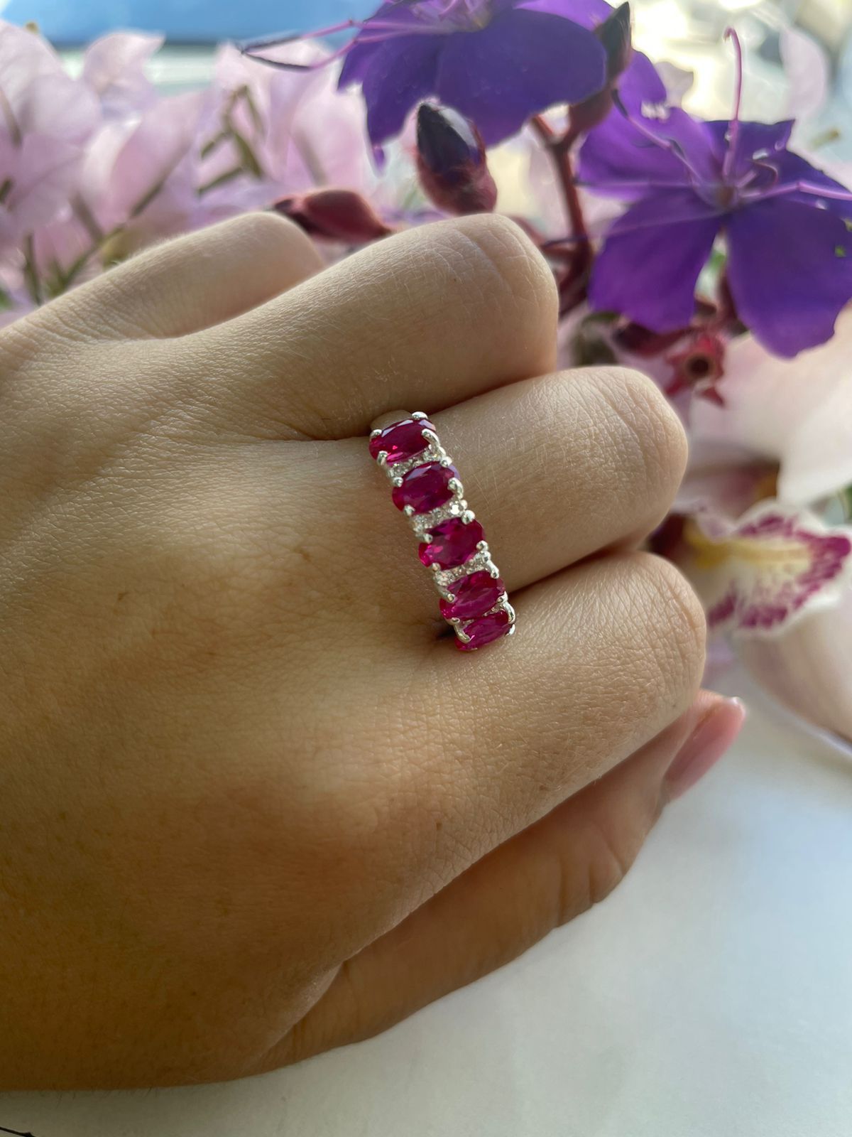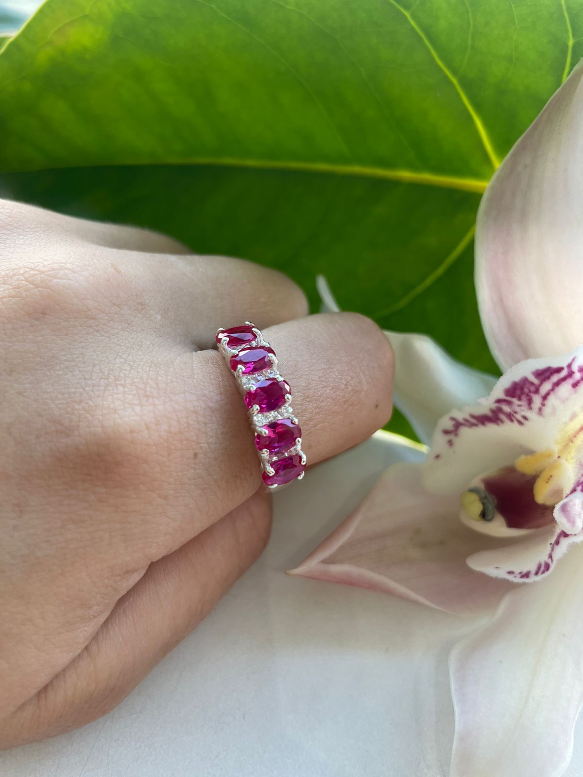 ANEL DE PRATA, MEIA ALIANÇA QUADRADA, VERMELHACód. 2046355