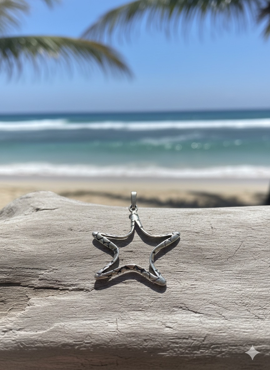 PINGENTE ARTESANAL CONFECCIONADO EM PRATA 925,CON DELICADO CONTORNO DE ESTRELA DO MAR, INSPIRADO NA BELEZA DO OCEANO.