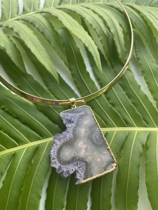 COLAR FOLHEADO OURO COM SODALITA E TURQUESA